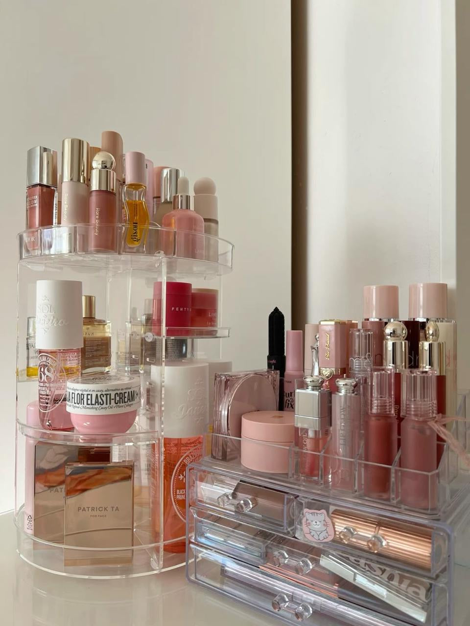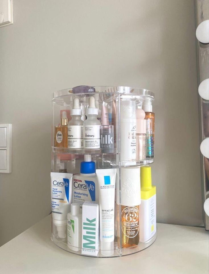 With space for over 60 items, including lipsticks, perfumes, creams, brushes, and powders, it keeps your essentials neatly arranged and within reach. The 360° rotation ensures you’ll never have to dig through clutter again—just spin and find your favorite product instantly.
