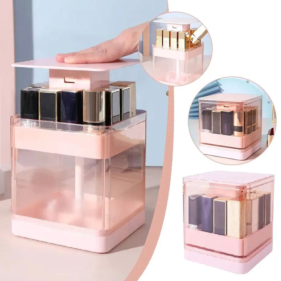 ✅ Smart Pop-Up Design – With just a gentle press on the top, the inner tray rises smoothly, instantly displaying your lipsticks, lip glosses, or small cosmetics. No more digging through clutter – everything is neatly presented at your fingertips.